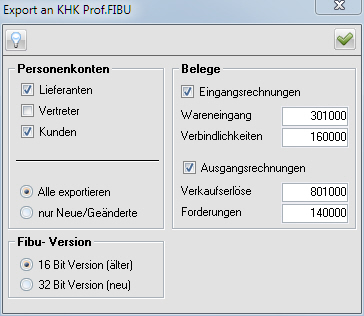 Hier wird der Export für die KHK prof. Fibu Software konfiguriert.