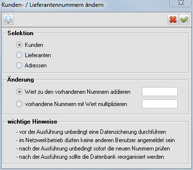 Mit dieser Funktion lassen sich Kunden-, Lieferanten- und Adressnummern nachträglich verändern.