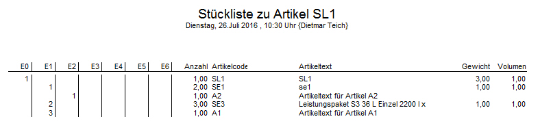 Zeigt die Stücklistenelemente des selektierten Artikels.