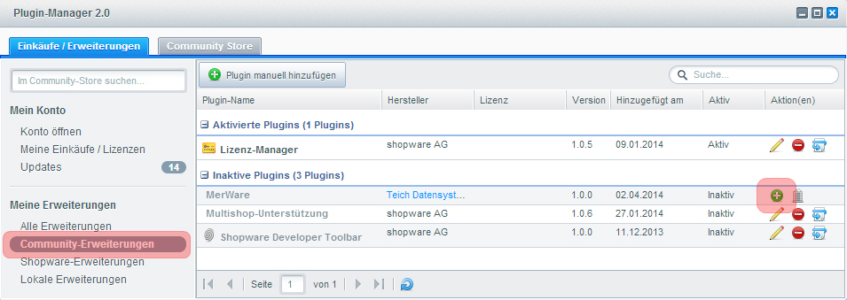 Für die Installation rufen Sie den Plugin-Manager unter Einstellungen > Plugin Manager auf und laden die lokale TdsMerware.zip hoch:
